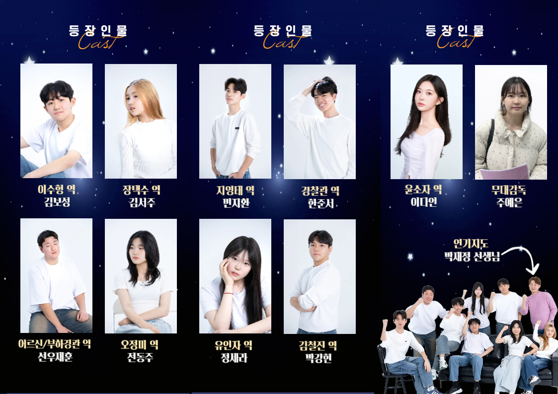 글보기제목[대전캠퍼스] 연극 <0118>이 관객 여러분의 성원 속에 성료되었습니다.2026-01-27 06:55카테고리공지사항작성자actingcode "관객 여러분의 뜨거운 성원 속에 연극 <0118>이 무사히 막을 내렸습니다. 바쁘신 와중에도 귀한 시간을 내어 자리를 빛내주신 모든 분께 깊은 감사의 말씀을 드립니다. 이번 공연은 학생들이 직접 인물(Character)을 분석하고 무대 위에서 살아 숨 쉬는 과정을 경험한 소중한 시간이었습니다. 보내주신 응원과 격려를 양분 삼아, 앞으로도 더욱 진정성 있는 연기를 보여드리는 배우들로 성장하겠습니다. 감사합니다." 태그 목록 댓글 [0] 더보기이전[동탄캠퍼스]카메라연기 특강 - 박상훈 감독2026-01-27다음액팅코드 중고등반 개설!2025-12-20 Powered by MangBoard | 망보드 스토어