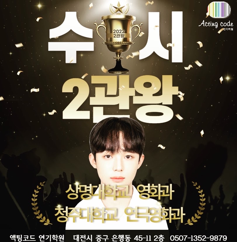 노력은 결코 배신하지 않는다는 것을 온몸으로 보여준 액팅코드의 자랑스러운 얼굴들입니다. 수많은 밤을 새워 연습하고, 끊임없이 자신을 단련하며 흘린 땀방울이 마침내 빛나는 합격증으로 돌아왔습니다.이들의 성공은 단순한 운이 아닌, 체계적인 시스템과 뜨거운 열정이 빚어낸 필연적인 결과입니다.최고를 꿈꾸는 당신, 최고의 선택은 언제나 액팅코드입니다. 제목2관왕 - 상명대학교 영화과, 청주대학교 연극영화과 합격2025-12-20 18:51작성자actingcode #상명대학교 영화과 합격# 청주대학교 연극영화과 합격# 영화과 합격# 연극영화과 합격# 합격자# 2관왕# 액팅코드연기학원# 연기학원 목록 댓글 [0] 더보기다음정시 2관왕 - 경성대학교 뮤지컬과, 동아방송대 뮤지컬과 합격자actingcode 2025-12-20 Powered by MangBoard | 망보드 스토어